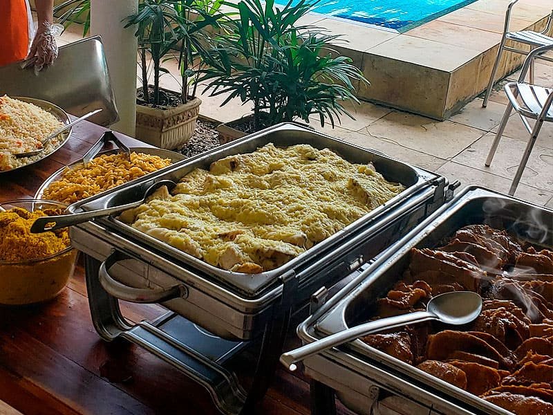 Nossa equipe de especialistas em gastronomia prepara refeições deliciosas e variadas para o seu evento, incluindo pratos quentes e frios, saladas, aperitivos e sobremesas. Tudo preparado com ingredientes frescos e de alta qualidade, ideal para festas de aniversário, casamentos, eventos empresariais e muito mais.